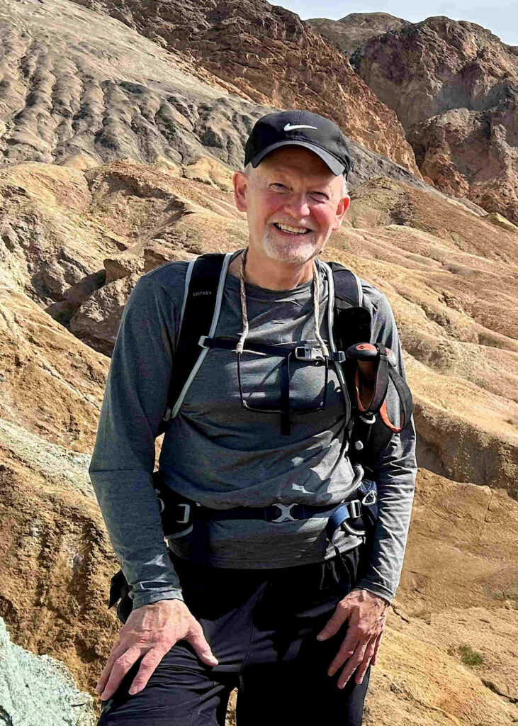 In the summer of 2024, Steve went on a 5-day trip to Iceland hiking on the world-renowned Laugavegur Trail. The trail is a 55 km (34 mile) multi-day hike that runs through the south central Highlands of Iceland toward the coast. The trail is only open for hiking for three months during the year, due to its short summer season and unpredictable weather, but it is considered one of the most spectacularly beautiful hiking trails in the world. The hike is known for its diverse landscapes, otherworldly scenery, and its stark and dramatic beauty. Along the way, hikers cross lava fields, pass by hissing fumaroles of boiling steam, make icy river crossings, traverse snow-covered fields and lichen-covered hills, view glaciers and volcanos on the horizon, cross a dessert of volcanic ash, travel through grassy plains filled with wildflowers, and walk through lush forests. Following the 4-day Laugavegur Trail trek, he traveled to the south coast of Iceland and visited nearby sights including the Seljalandsfoss and Skogafass Waterfalls, Reynisfjara Black Sand Beach, and then ended his trip with a guided hike atop the Solheimajokull Glacier.